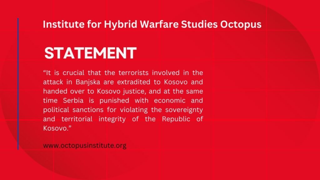 The Octopus Institute also emphasizes the need for the international community to increase pressure on Serbia, demanding responsibility for organizing the attack on Kosovo on September 24, 2023.